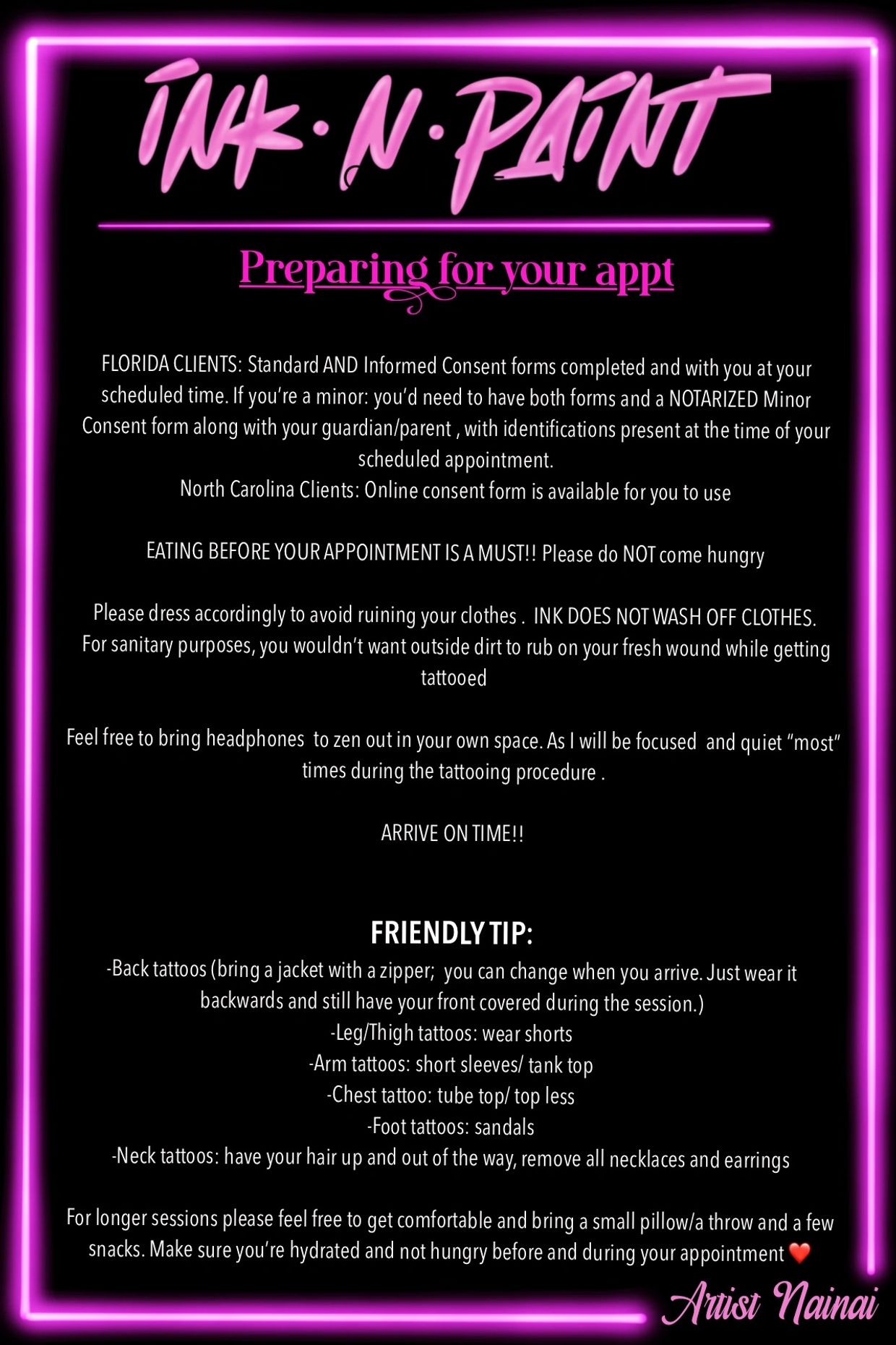 For any other questions please text artist directly